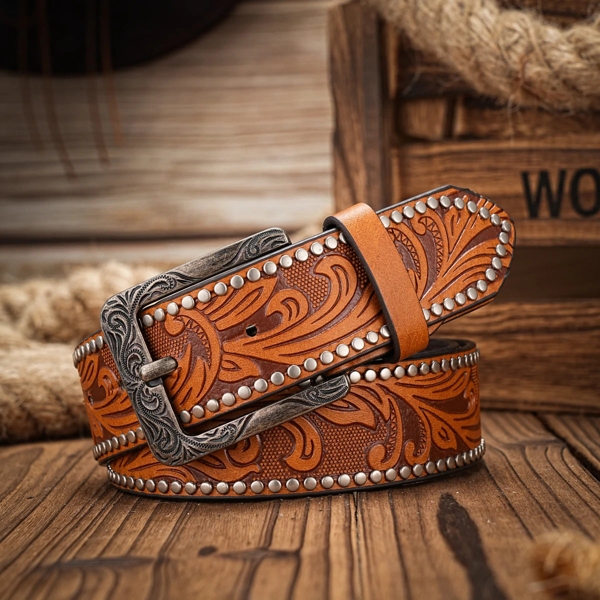 Ride in style with the Mustang Leather Belt, featuring detailed Western embossing and a sturdy engraved buckle. Crafted from premium leather, this belt offers both durability and timeless Western charm. Perfect for pairing with jeans or adding a rugged touch to any outfit.