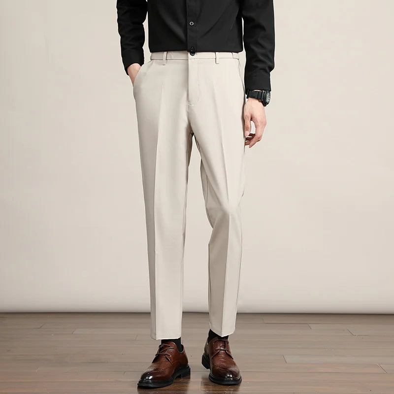 Stretch-woven performance fabric, tailored with a sleek tapered leg, ideal for office days or formal nights, cropped at the ankle for a modern finish, designed for men who dress with direction.